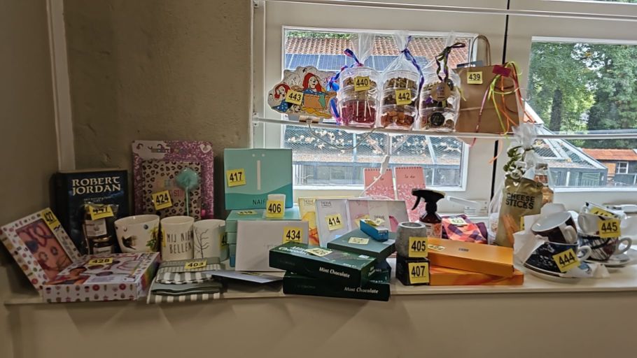 In de Educatieve ruimte stonden warme koffie, thee en soep klaar en kon je wat lekkers kopen bij Schenkerij Wattez. De loterij was een groot succes: alle loten zijn verkocht en de prijzen waren prachtig – veel dank aan onze sponsoren!